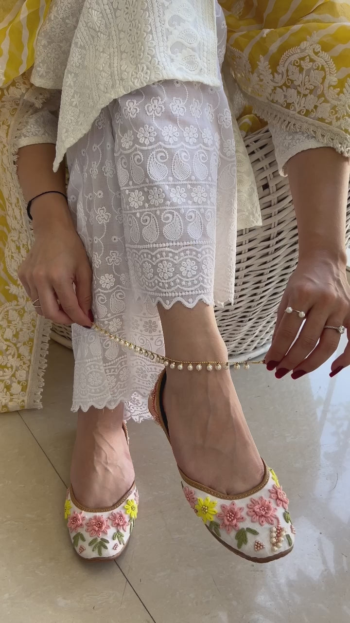 Petal Poetry Jutti s gracefully handcrafted with intricate beadwork and raised silk thread embroidery, adding a subtle shimmer to every step. Elegant, timeless, and perfect for every occasion — from bridal to festive celebrations.