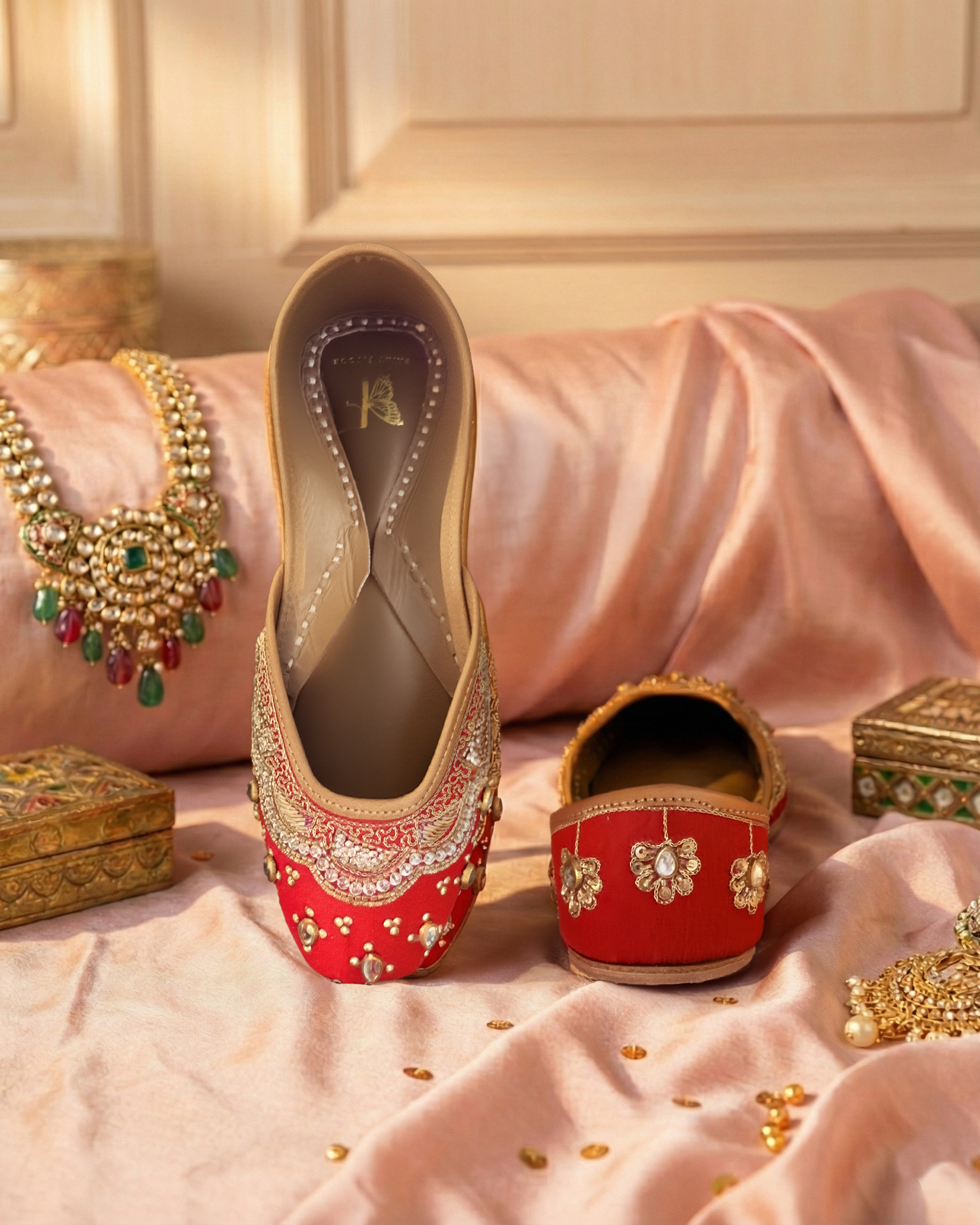 Buy Fairy Fitoor's red jutti perfect for wedding season.
